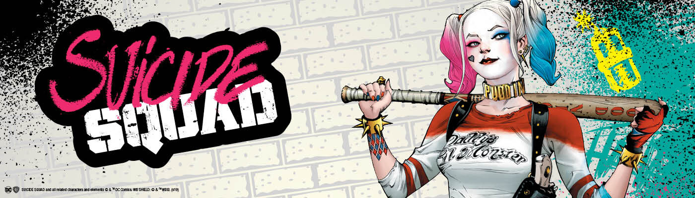 Dazu gehörten die völlig durchgeknallte Harley Quinn, der Profikiller Deadshot, der Pyrokinete El Diablo, der Meisterdieb Captain Boomerang, der Kannibale Killer Croc und Söldner Slipknot. Alles also Gestalten, die man niemals zum Feind haben möchte. Besser also, man wird selbst zu einem Mitglied der Suicide Squad! Wenigstens zeitweise. Im Online-Shop findet man alles was man braucht, um sich selbst als Mitglied des Suicide Squads kenntlich zu machen. Hier gibt‘s die passenden Klamotten, Poster, Becher, Schmuck, Accessoires, Figuren, Filme, Bücher und Comics.