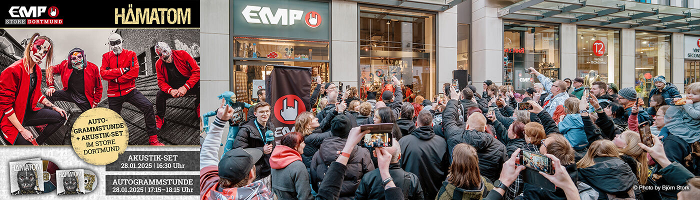 • „Wir sind keine Band - Wir sind eine Familie!“ Das dieser Satz keine keine Floskel, sondern gelebter Alltag ist, haben HÄMATOM diese Woche bei ihrer intimen und einzigartigen Live-Show im EMP Store in Dortmund mit anschließender Autogrammstunde für das neue Album „Für Dich“ unter Beweis gestellt. Unser Nachbericht wie immer - nur in deinem EMP #MAG!