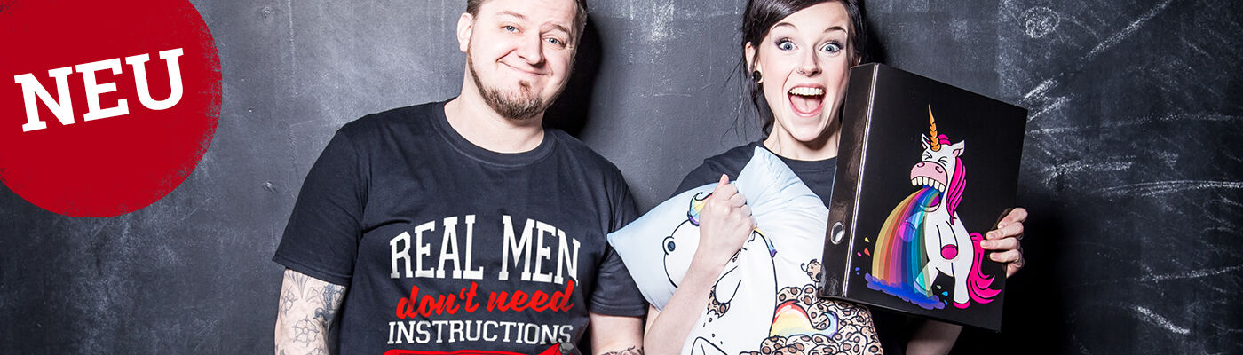 Und auch die Männer müssen an kälteren Tagen nicht auf ihr T-Shirt mit Spruch verzichten, denn wir haben auch Hoodies für die Herren der Schöpfung, die einen lustigen Spruch, oder ein cooles Bild als Aufdruck haben.