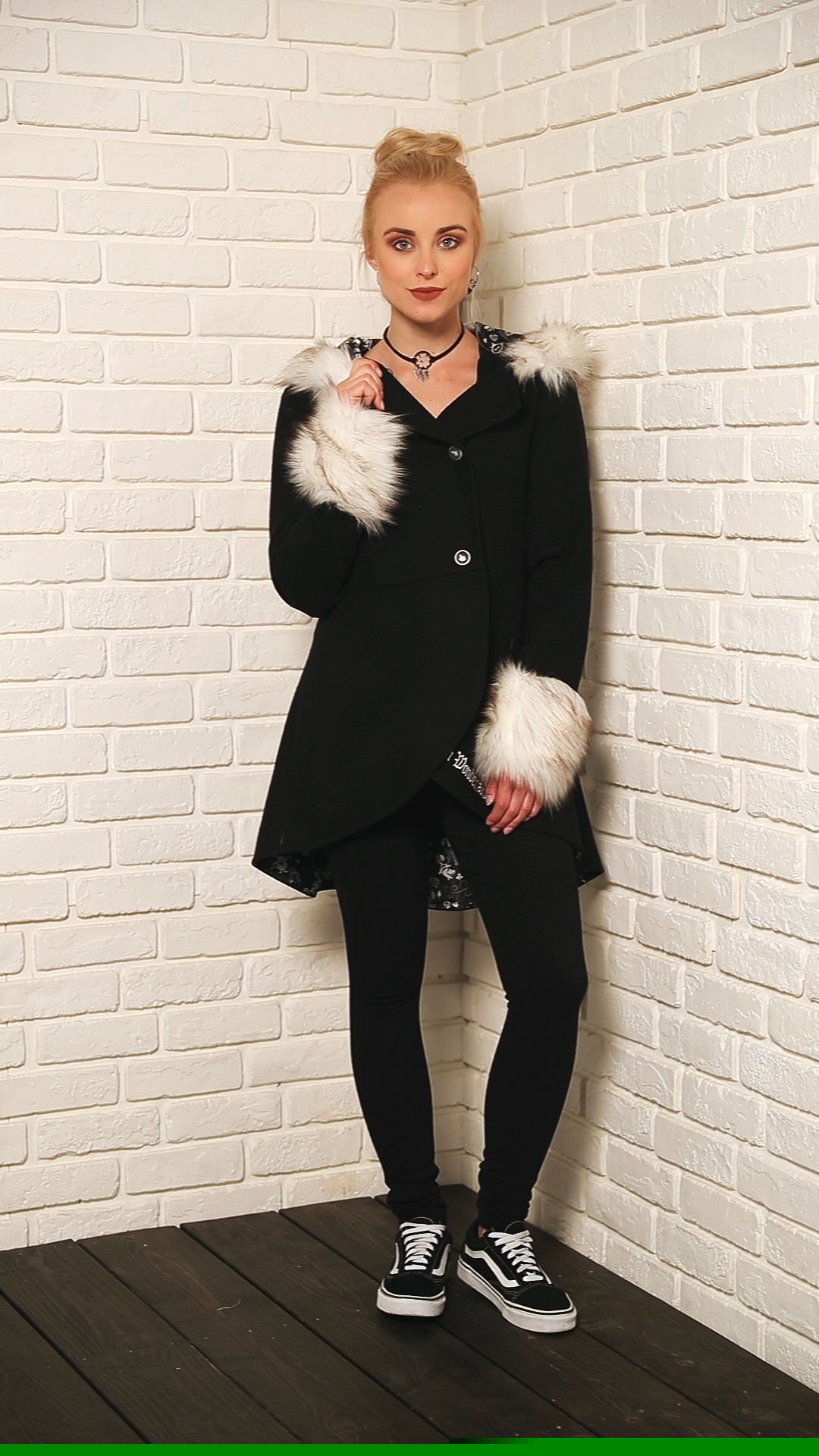 - Kapuze und Ärmelsaum mit Kunstfell